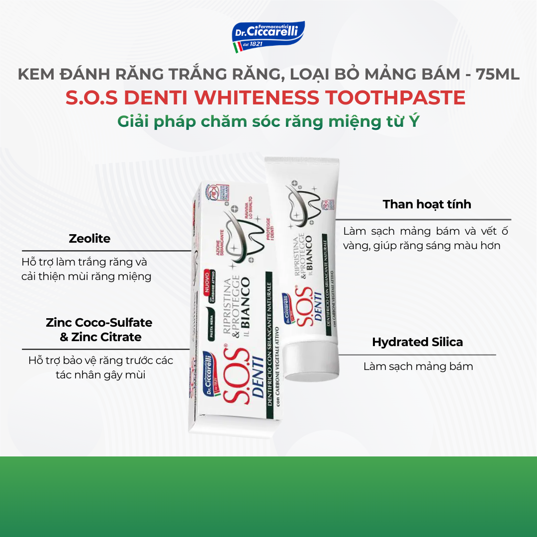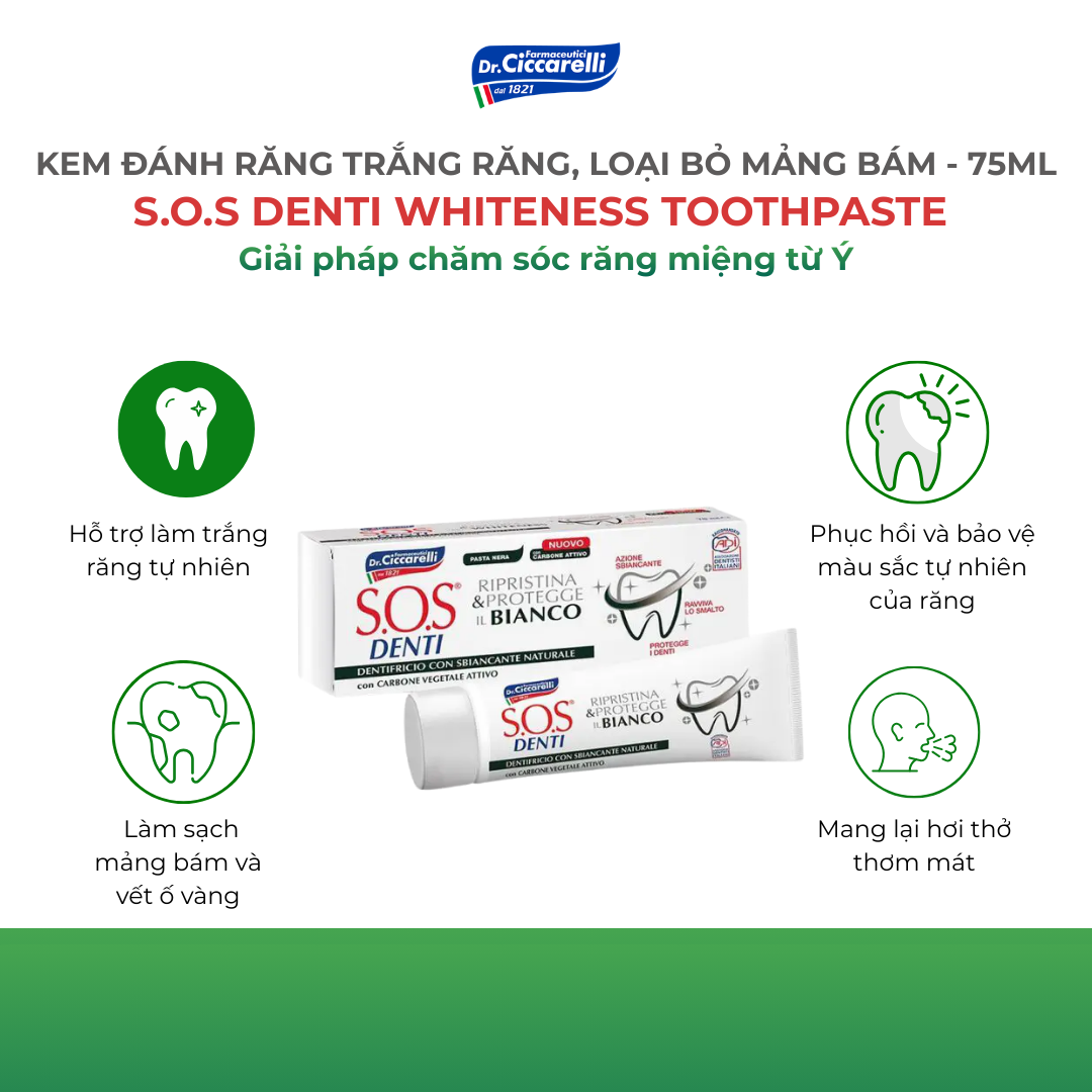 Kem Đánh Răng Loại Bỏ Mảng Bám – S.O.S Denti Dr.Ciccarelli | Làm Sạch – Làm Trắng – Giữ Hơi Thở Thơm Mát