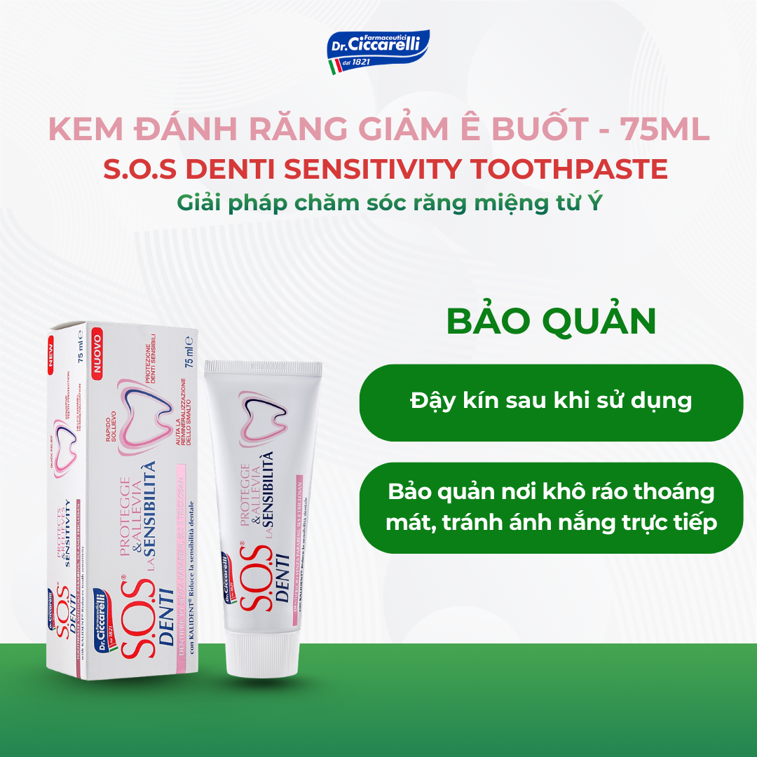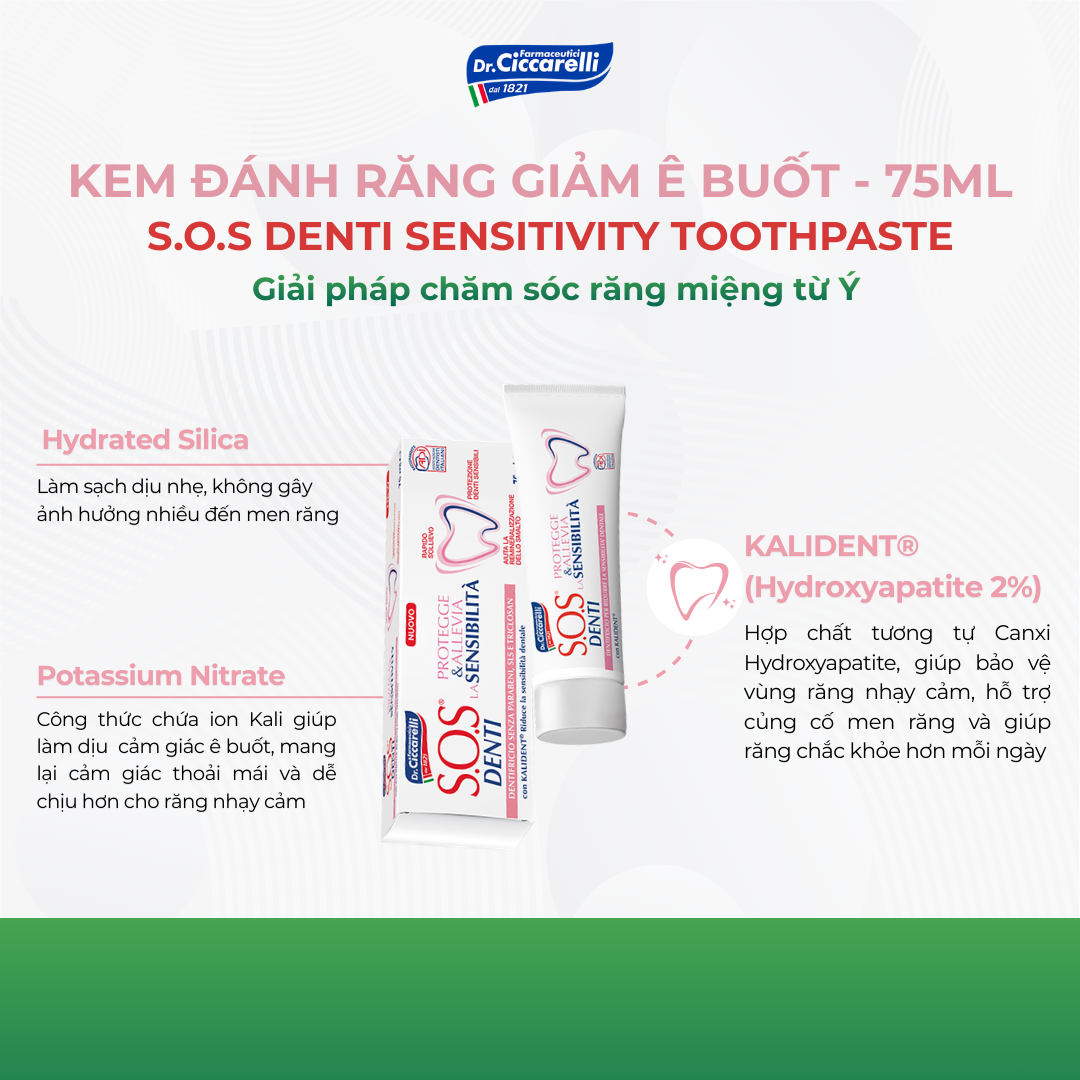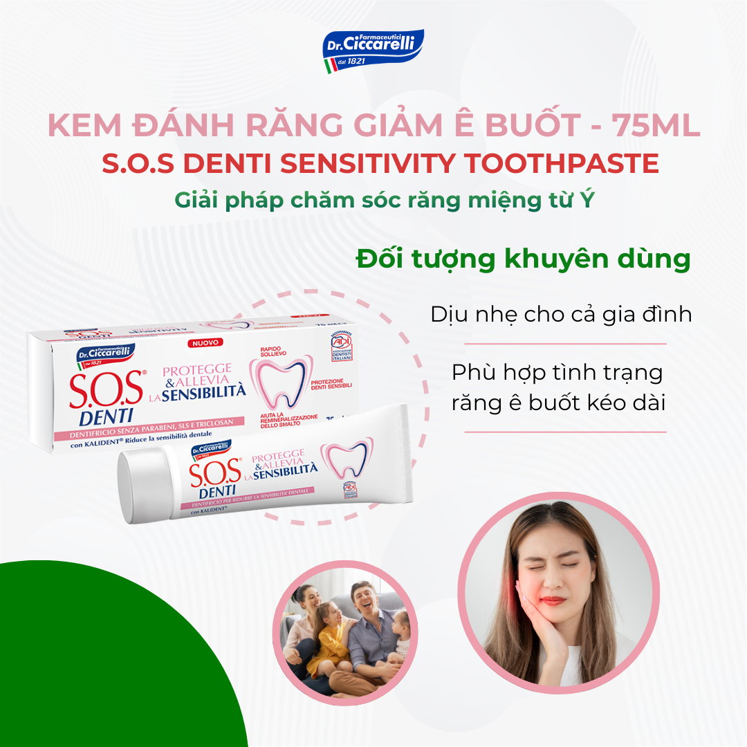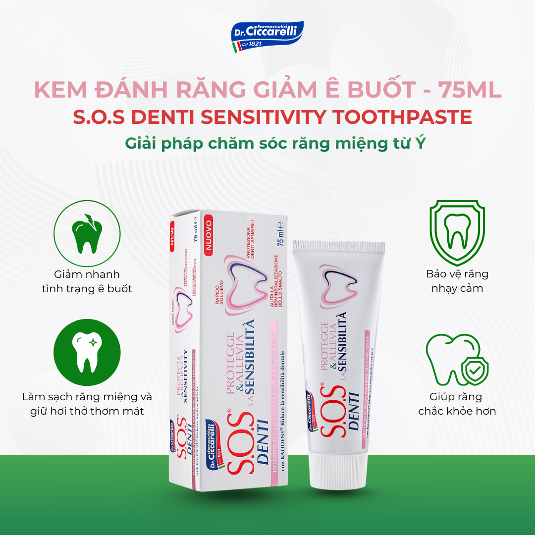 Kem Đánh Răng Trắng Hồng – S.O.S Denti Dr.Ciccarelli | Bảo Vệ Răng Nhạy Cảm – Làm Dịu Ê Buốt Nhanh
