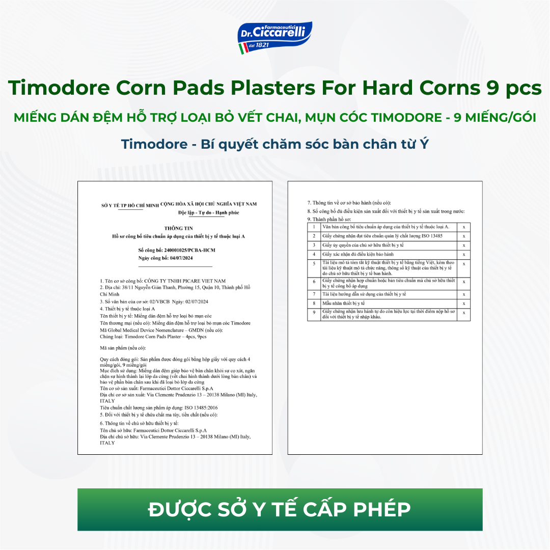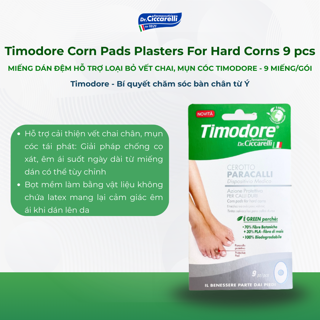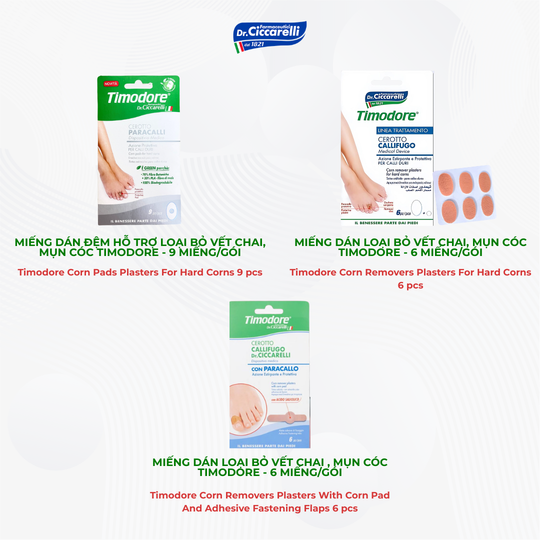 Dòng sản phẩm Timodore của thương hiệu Dr.Ciccarelli được thiết kế đặc biệt với công dụng ngăn ngừa và bảo vệ bàn chân khỏi sự hình thành vết chai – Picare là nhà phân phối độc quyền của Dr.Ciccarelli tại Việt Nam