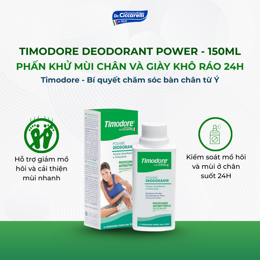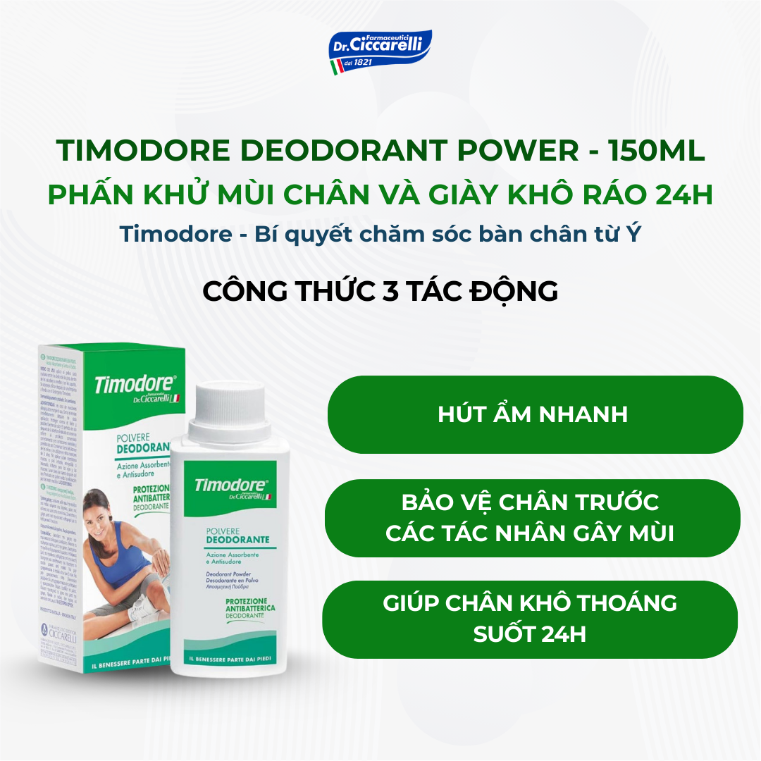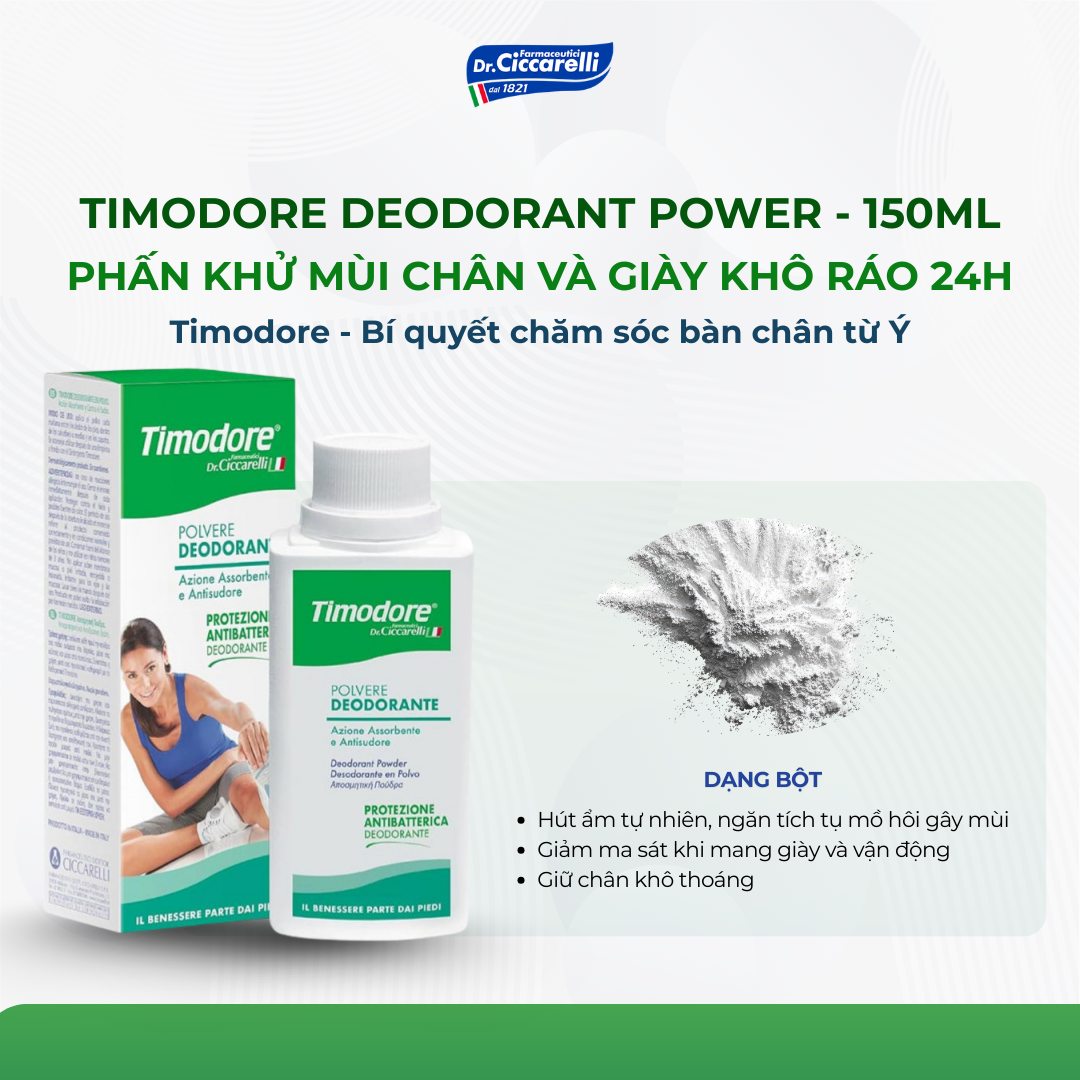 Phấn khử mùi chân và giày khô ráo 24h – TIMODORE Deodorant Power