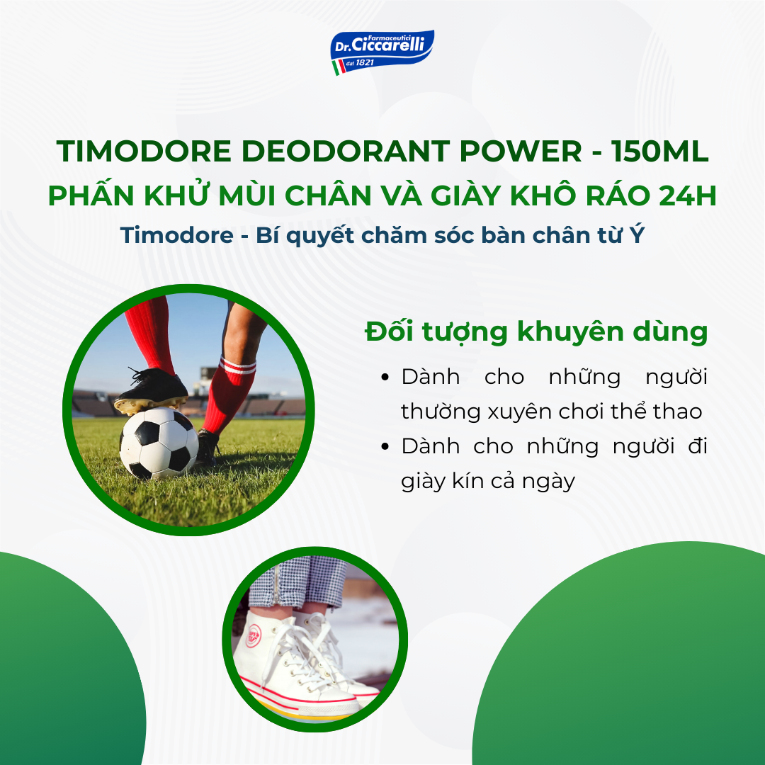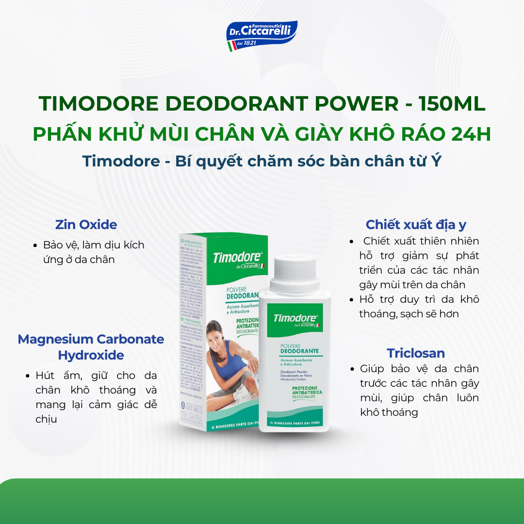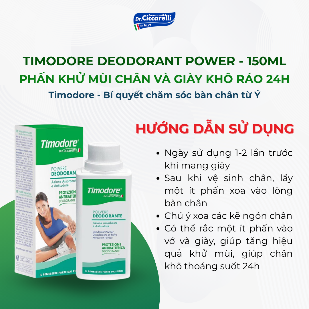 Phấn khử mùi chân và giày khô ráo 24h – TIMODORE Deodorant Power