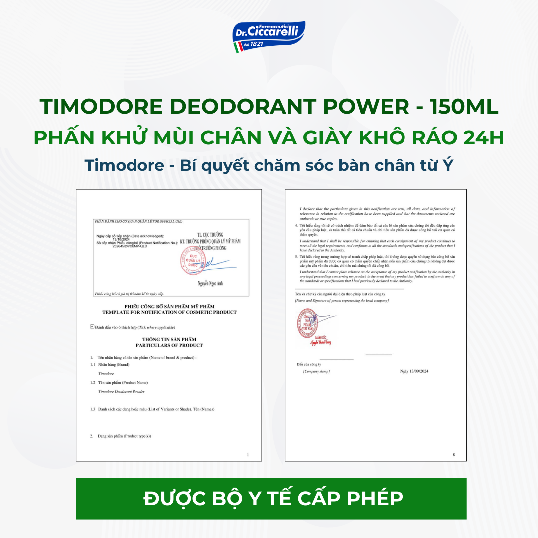 - TRICLOSAN: giúp bảo vệ da chân mạnh mẽ trước các tác nhân gây mùi, giúp chân khô thoáng