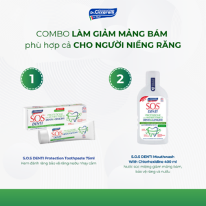 NƯỚC SÚC MIỆNG GIẢM MẢNG BÁM, BẢO VỆ RĂNG VÀ NƯỚU S.O.S DENTI MOUTHWASH WITH CHLORHEXIDINE 0,12% – 400ML